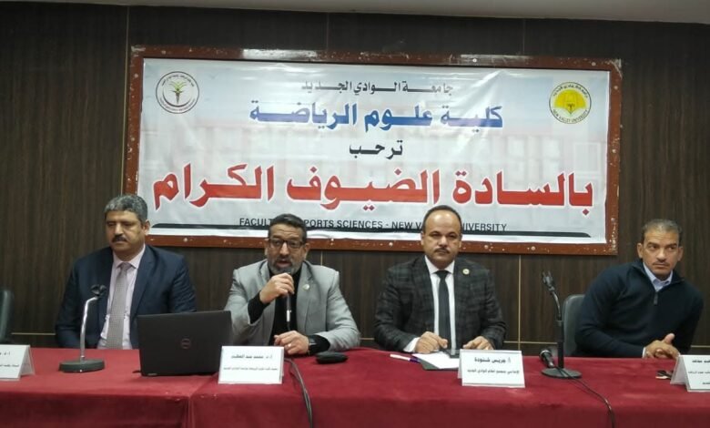 في اطار الحملة الاعلامية لقطاع الاعلام الداخلى بالهيئة العامة للاستعلامات لتعزيز الوعى لدى الشباب بالتحديات التى تواجه الوطن وتوجيهات دكتور احمد يحى رئيس القطاع واشراف السيد حمدى سعيد رئيس الادارة المركزية لاعلام شمال ووسط الصعيد عقد مجمع اعلام الوادى الجديد اليوم الثلاثاء ٢٠٢٦/3/3ندوة موسعة بعنوان وعى راسخ …..ومسؤولية تصنع الفارق بمقر كلية علوم الرياضة جامعة الوادى الجديد شارك فيها عدد كبير من طلاب الكلية والسادة الوكلاء واعضاء هيئة التدريس والعاملين بالمكاتب الادارية