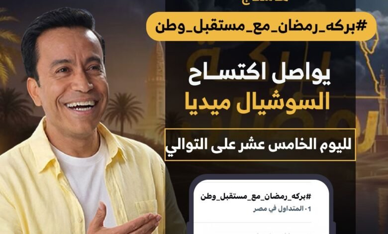 واصل هاشتاج #بركه_رمضان_مع_مستقبل_وطن تصدره لمنصات التواصل الاجتماعي لليوم الخامس عشر على التوالي، بالتزامن مع عرض الحلقة الخامسة عشرة من برنامج بركة رمضان المذاع عبر قناة DMC، والذي يقدمه الفنان سامح حسين برعاية حزب مستقبل وطن.