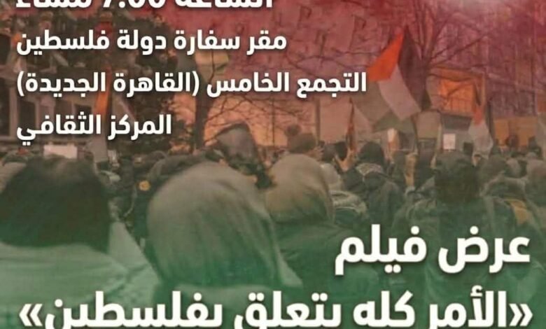 سفارة فلسطين بالقاهرة تنظم عرضًا خاصًا لفيلم “الأمر كله يتعلق بفلسطين” .. الخميس القادم