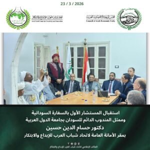 نظم مكتب السودان باتحاد شباب العرب للإبداع والابتكار، العامل ضمن نطاق مجلس الوحدة الاقتصادية العربية وجمعية دنقلا فرع القاهرة، المعايدة السنوية بمناسبة عيد الفطر السعيد، برعاية كريمة من العميد علي محمد القحيف، رئيس الاتحاد، وبحضور الأمين العام للاتحاد الدكتور ماجد عاطف الإسي، والمستشار الدكتور حسام حسين، ممثل المندوب الدائم لدولة السودان بالجامعة العربية.