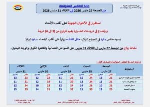 وعلى الرغم من التحسن العام، إلا أن فرص سقوط “رذاذ خفيف” أو أمطار متفرقة لا تزال قائمة على مناطق من شمال البلاد وسيناء والقاهرة الكبرى، لكنها ستنحسر تدريجيًا مع تقدم ساعات النهار.