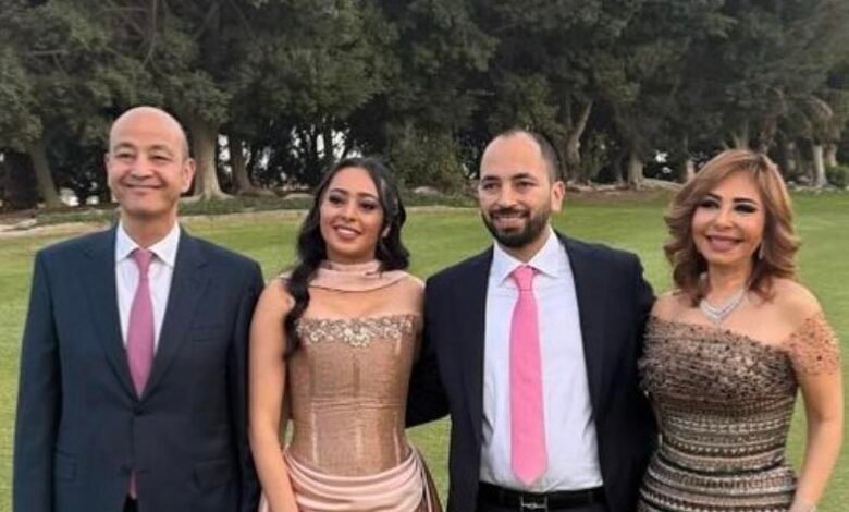 واجتمع الإعلاميان لميس الحديدي وعمرو أديب في صورة جماعية عائلية رفقة نجلهما وعروسته، إلى جانب عدد من الأهل والأقارب والأصدقاء المقربين.