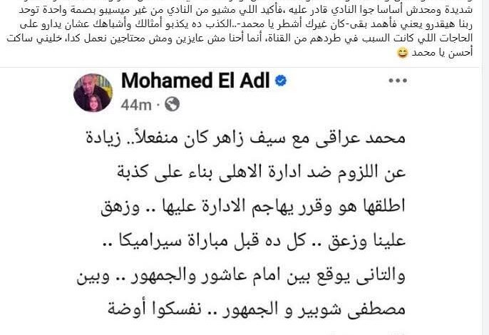 البداية جاءت من العراقي، الذي وجه انتقادات لاذعة، مؤكدًا أن العودة إلى قناة الأهلي ليست مرتبطة بمحاولات التقرب أو الإشادة، في إشارة إلى وجود عوامل أخرى تتحكم في المشهد داخل النادي، بحسب تعبيره. كما أشار إلى أن بعض الأسماء التي رحلت لم تقدم ما يشفع لها للعودة مجددًا.