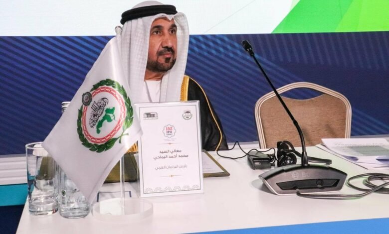 وأكد “اليماحي” أن هذه التحديات الجسيمة، تفرض اليوم وأكثر من أي وقت مضى وحدة الصف العربي وتعزيز التضامن وتكثيف مستويات التنسيق المشترك، وتوحيد المواقف داخل مختلف المحافل الإقليمية والدولية، مؤكدًا أن البرلمان العربي يقف داعمًا ومساندًا لكل ما يتخذه رؤساء المجالس والبرلمانات العربية من قرارات وإجراءات، وعلى استعداد كامل للقيام بدور فاعل في تعزيز التحرك البرلماني العربي على المستويين الإقليمي والدولي.