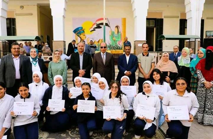 وخلال الزيارة، سلّم المحافظ الشهادات للطالبات الفائزات بمسابقة “توفاس” اليابانية المعتمدة من جامعة هيروشيما ووزارة التربية والتعليم المصرية، لقياس مهارات الطالبات وتوثيق قدراتهن البرمجية، والمعتمدة من مؤسسة سبريكس اليابانية، كما كرّم عددًا من الطالبات المتميزات تقديرًا لتفوقهن العلمي وتميزهن في البرامج التعليمية الحديثة.