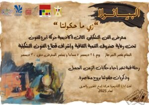 وفى إطار متصل يشهد قصر الأمير طاز بالقاهرة يوم الأربعاء الموافق 24 ديسمبر 2025,فى تمام الساعة الخامسة مساءاً افتتاح معرض “البيانولا – زي ما حكولنا”.